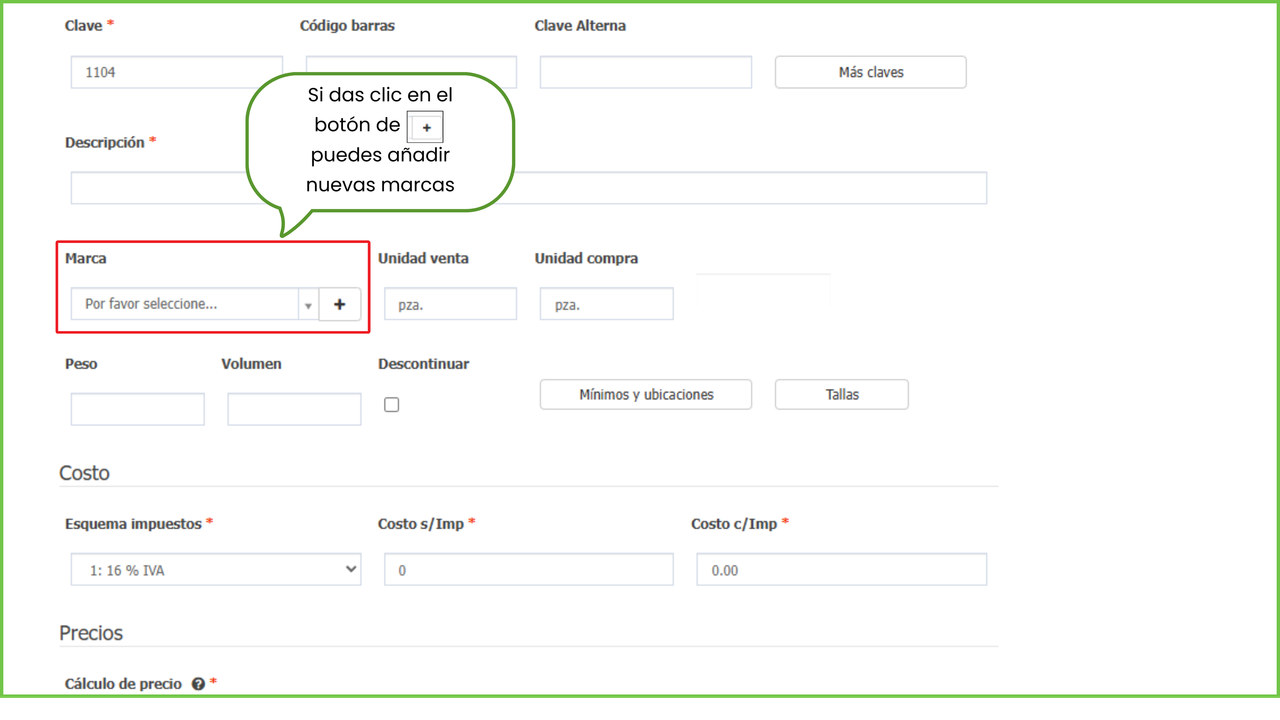 Las marcas pueden crearse, editarse o eliminarse directamente desde el sistema.
