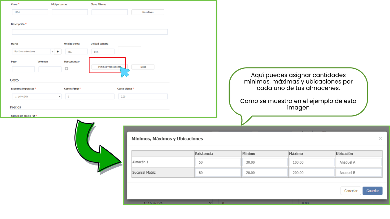 Este campo ayuda a identificar dónde se encuentra el producto dentro del almacén, por ejemplo: