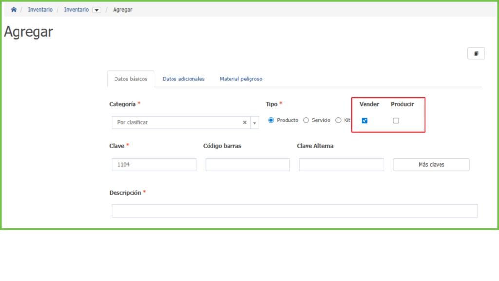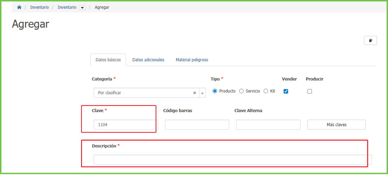 Para agregar un producto al inventario, solo dos datos son obligatorios: