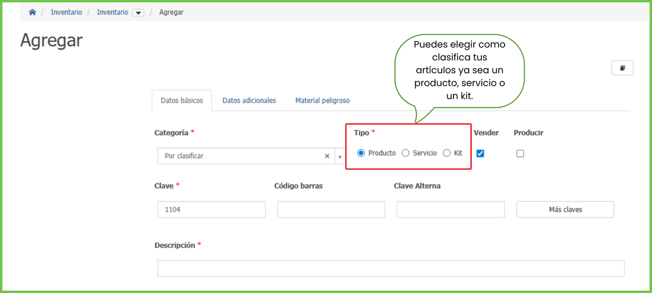 Agregar un artículo al inventario es el proceso mediante el cual se registran los artículos, servicios o kits que una empresa maneja dentro de su sistema de inventarios.