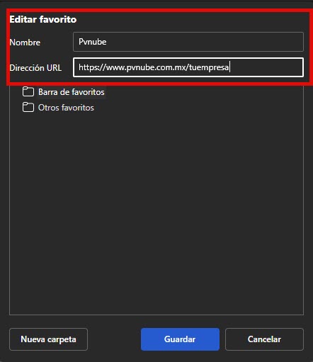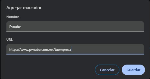 Anclar PVnube a tus favoritos te permite acceder más rápido a tu cuenta sin tener que escribir la dirección cada vez.