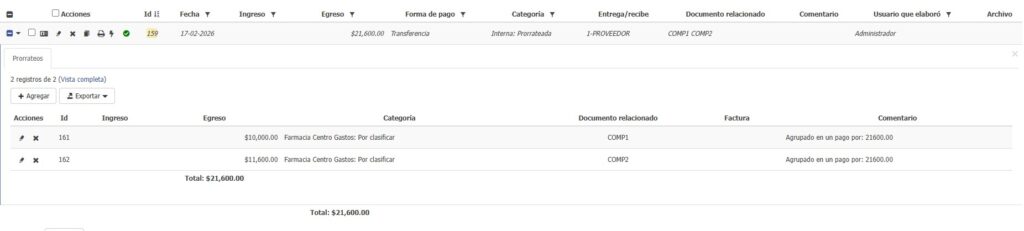 - 🔴 Rojo → El prorrateo está incompleto.